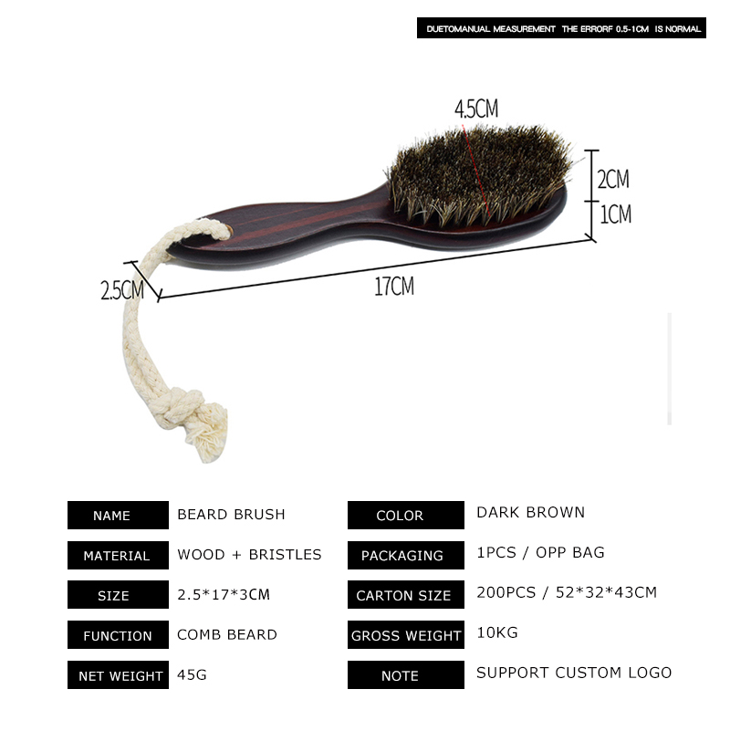 Hair dressing wooden beard brush with handle for men boar bristle beard brush